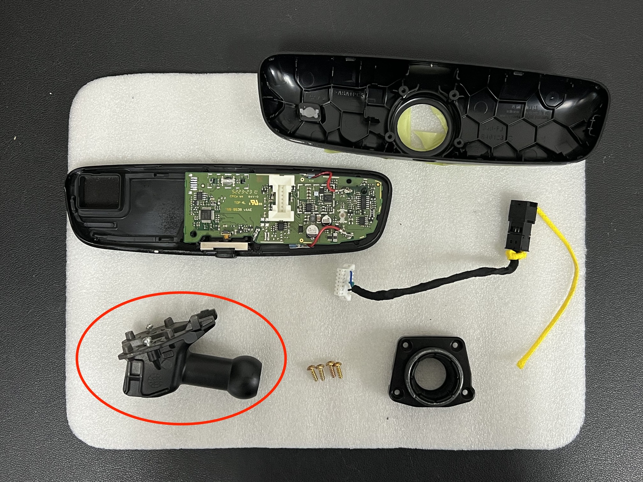 その場合は純正ルームミラーを分解して、ブラケット部分のみ流用して取り付けるパーツを使用します。